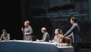 Ergänzt wird das Stück durch den Text von Derya Türkmens Erzählung OPAS HEIMAT. OPAS HEIMAT wiederum ist die Geschichte einer türkischen Familie, die seit über fünf Jahrzehnten in Deutschland lebt und von diesem Potsdamer Treffen direkt betroffen sind. Das trifft auf viele Millionen Menschen mit Migrationshintergrund zu, die in Deutschland ihre Heimat gefunden haben. Es sind also zwei Geschichten, zusammengeführt zu einem Theaterstück, das Millionen Menschen in Deutschland betrifft.